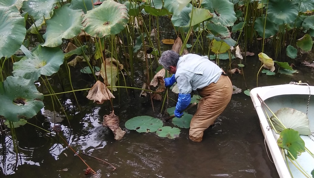 方生池の蓮の掃除をしました